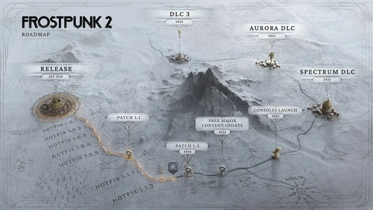Ранее разработчики рассказали о своих дальнейших планах на стратегию и представили карту развития игры. В частности, в 2025 году пользователей ждёт запуск Frostpunk 2 на консолях и релиз двух DLC.