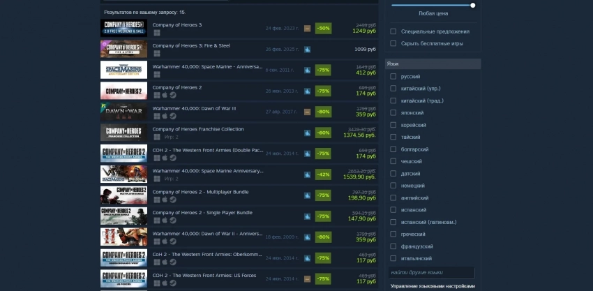 Авторы Company of Heroes 3 и первой Space Marine вернули ряд своих игр в российский Steam