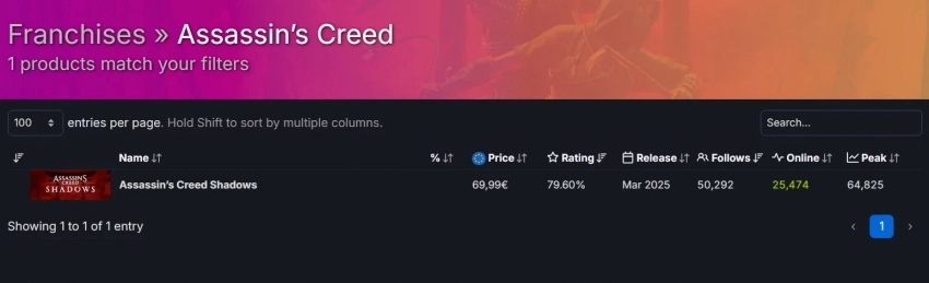 Пиковый онлайн Assassinʼs Creed Shadows в Steam стал рекордным для франшизы