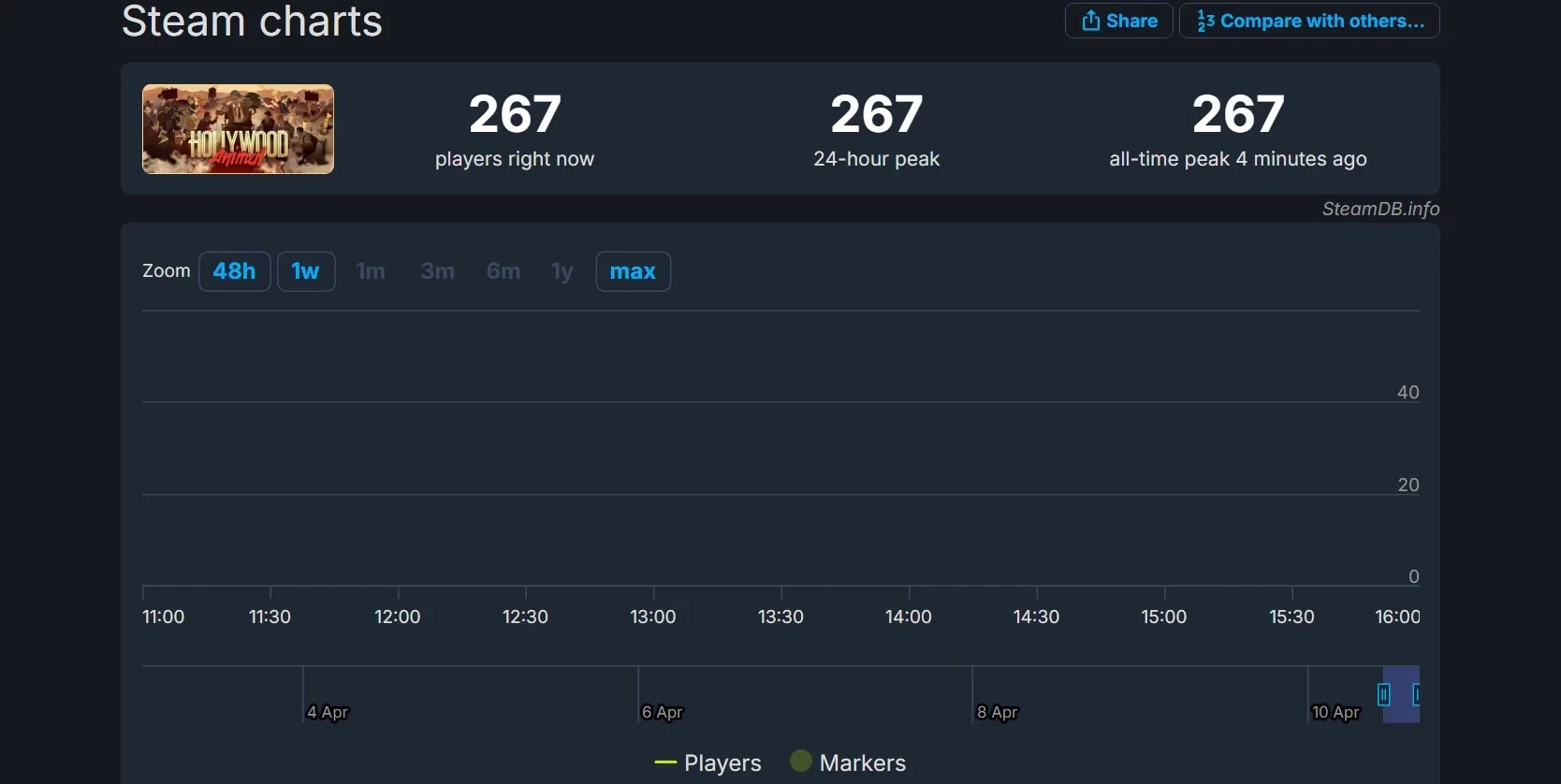 Пользовательская оценка Hollywood Animal ещё не сформирована — прошлого слишком мало времени с момента выхода. Стартовый пиковый онлайн составил 267 человек в момент написания новости, но он должен вырасти — как минимум геймерам нужно загрузить новинку.