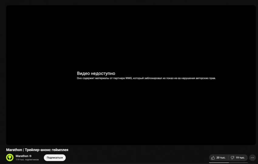 Геймлейный трейлер Marathon «снесли» с YouTube из-за претензий к музыке