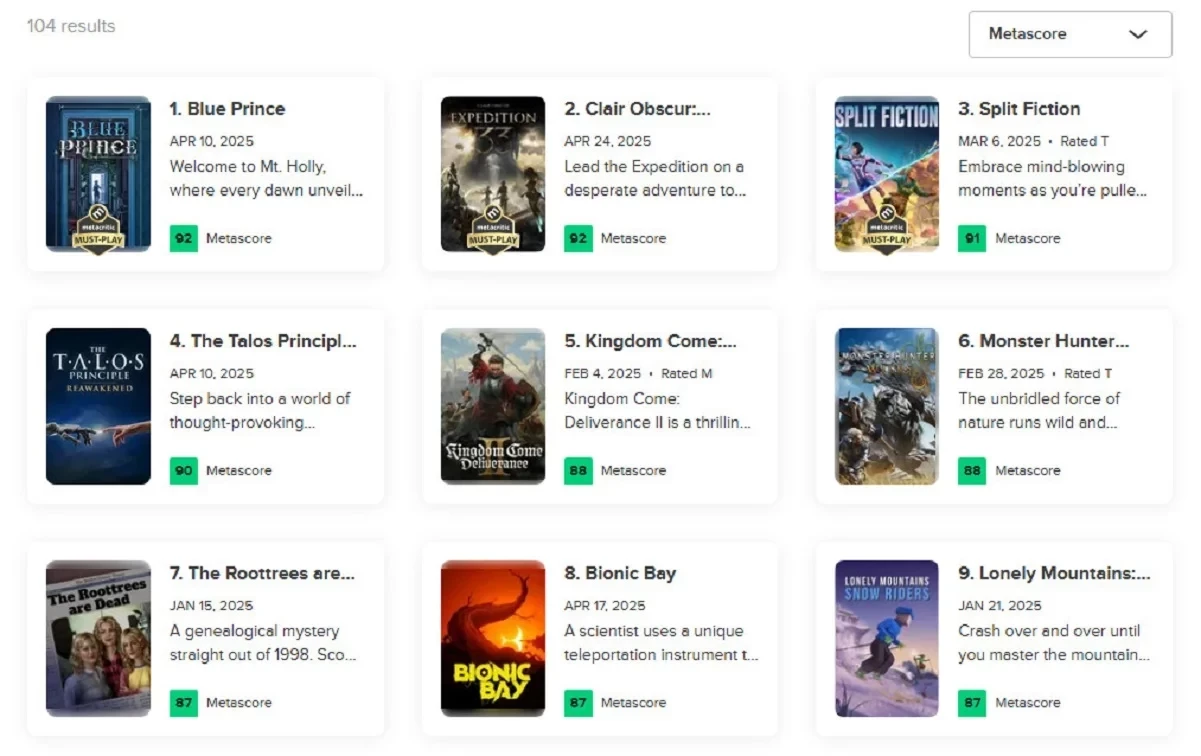 Заодно разработчики благодарят тех, кто поддерживает их в комментариях. А ещё простые игроки обратили внимание на примечательный факт — Clair Obscur: Expedition 33 в данный момент является второй в списке самых высокооценённых игр 2025 года по версии Metacritic. Грядущая новинка опередила кооперативную Split Fiction, но уступила головоломке Blue Prince (о которой положительно высказываются далеко не все игроки).