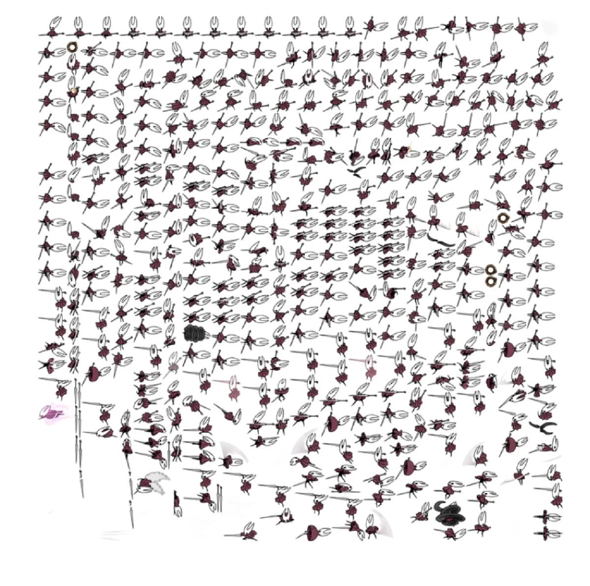 Ниже можно взглянуть на спрайт-лист Silksong, который будет представлен на упомянутой выставке ACMI.