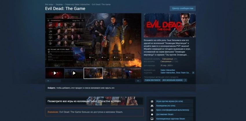 Ранее геймеры заметили, что Evil Dead: The Game внезапно пропала из Epic Games Store и PlayStation Store. А теперь игру больше нельзя купить в Steam. На момент написания новости она пока ещё доступна в магазине Xbox.