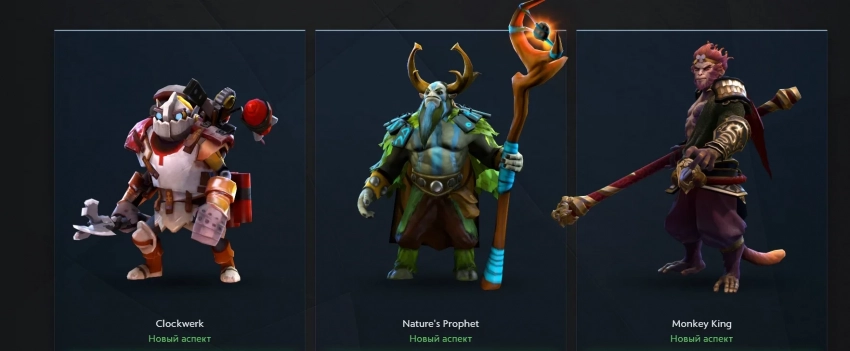 • Значительные изменения героев с новыми аспектами для Clockwerk, Natureʼs Prophet, Monkey King, Abaddon, Bloodseeker, Disruptor, Earthshaker, Lich, Muerta, Sand KInd, Silencer и Witch Doctor.