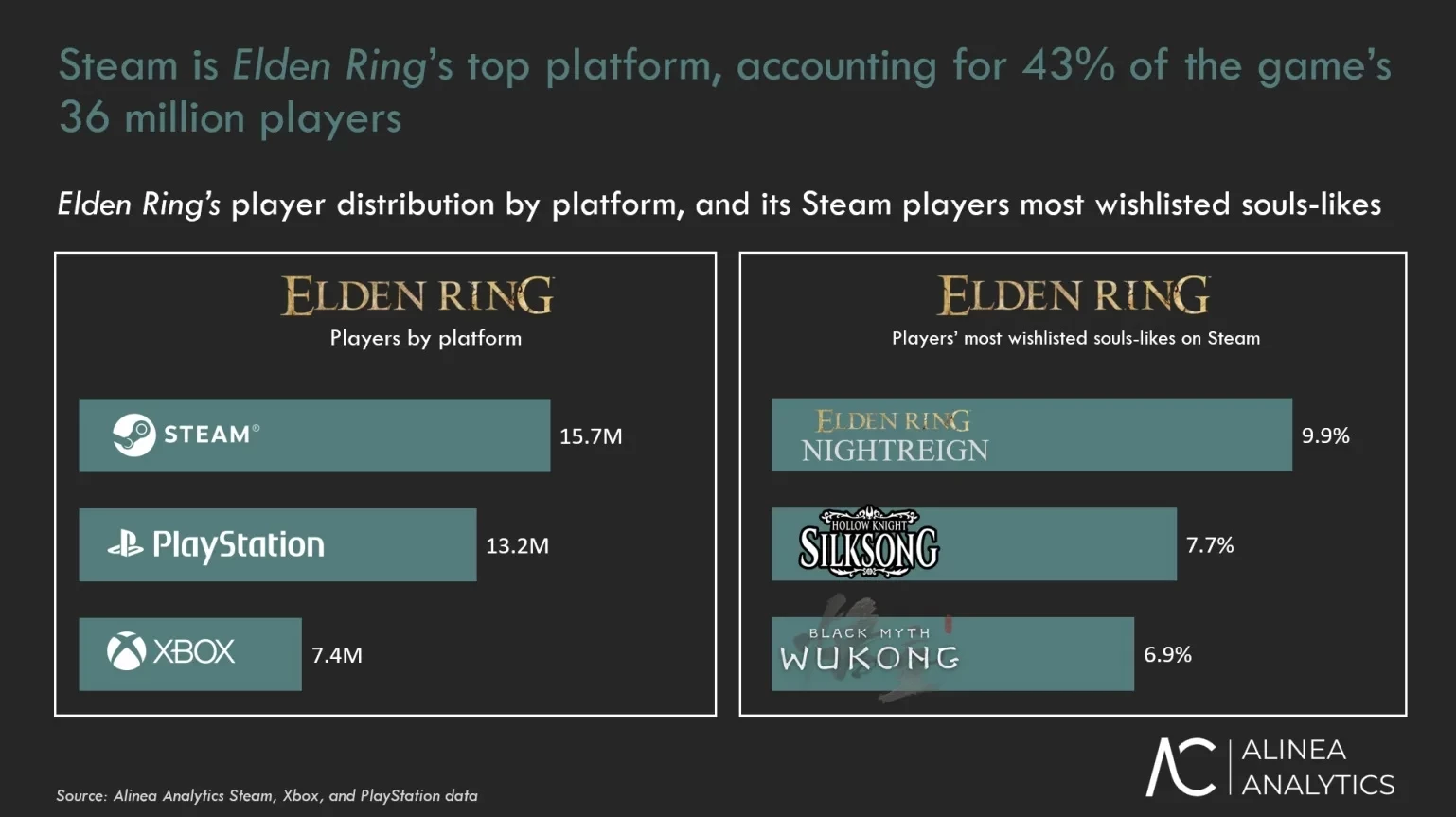 Согласно ей, главной платформой ролевого экшена FromSoftware является Steam (PC), и 45% местной аудитории наиграли больше 100 часов!