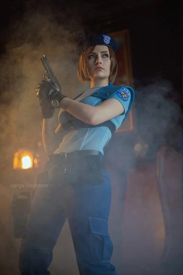 Прекрасная оригинальная Джилл Валентайн из первой части Resident Evil. Именно в таком облике она отправилась в поместье Спенсер. Более классический облик в топике и юбке был уже в третьей части серии.