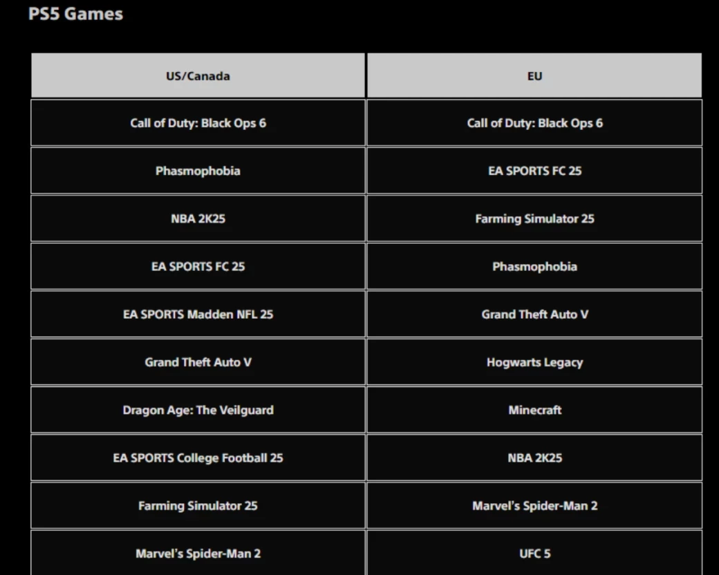 Первые три места в списке игр для PS VR2 в обоих регионах занимают Metro Awakening, Beat Saber и ремейк Arizona Sunshine. А среди бесплатных игр для PS4 и PS5 лидируют Fortnite, Call of Duty: Warzone и Roblox.