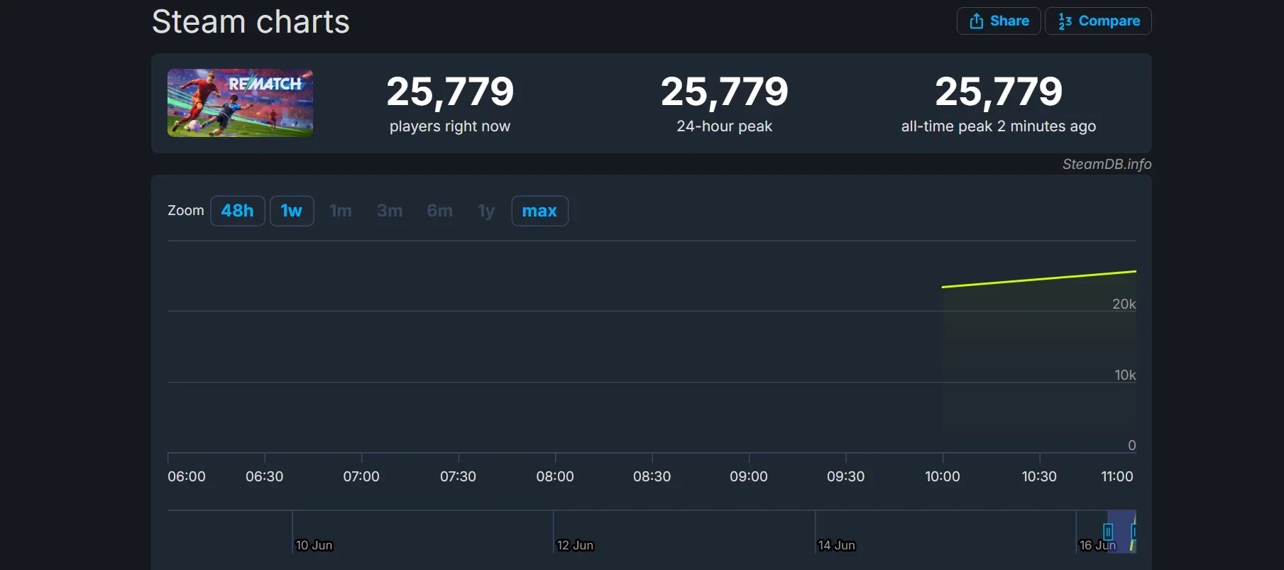 Пиковый онлайн в Steam в момент написания новости почти достиг отметки в 26 тысяч одновременных игроков. Стоит ждать, что число увеличится в момент полноценного релиза 19 июня, а также на выходных.